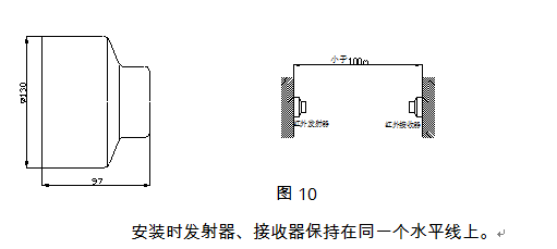 安裝時(shí)發(fā)射器、接收器保持在同一個(gè)水平線上。