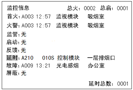 3) 監(jiān)控界面的延時信息按發(fā)生的時間及聯(lián)動邏輯存儲順序循環(huán)顯示各條延時信息,顯示內(nèi)容:延時設備