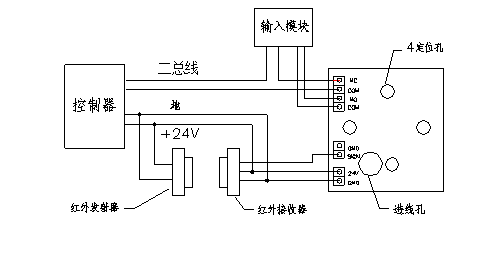 COM、NO為無源常開觸點,報警時閉合,為輸入模塊輸入開關(guān)信號。