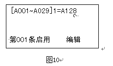 在“設(shè)備設(shè)置”界面按“3”鍵進(jìn)入“邏輯設(shè)置”界面,按鍵盤輸入邏輯式方法詳見(jiàn)“邏輯的編寫調(diào)試”。按“確認(rèn)”鍵啟用,否則編輯無(wú)效。如下圖10所示: